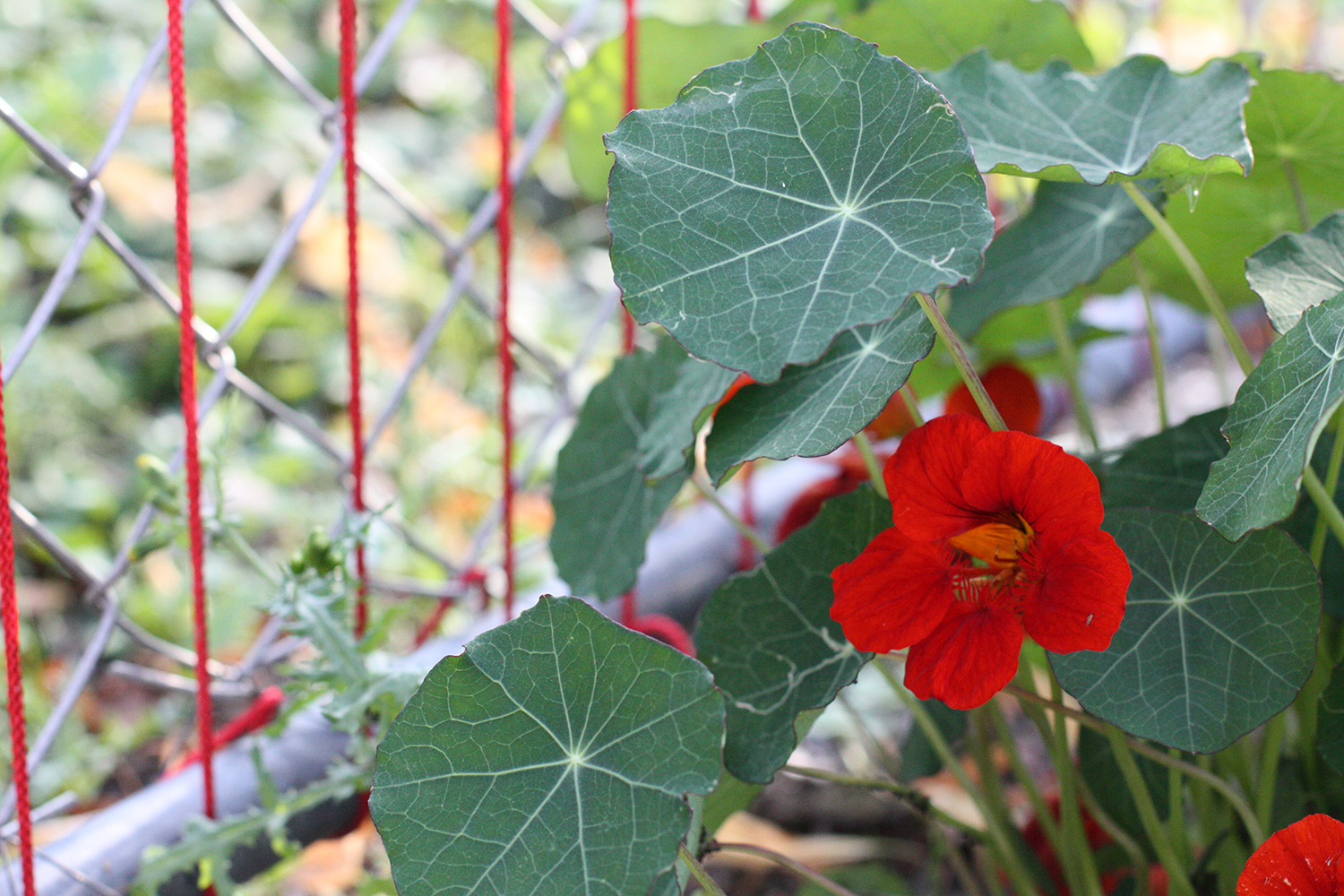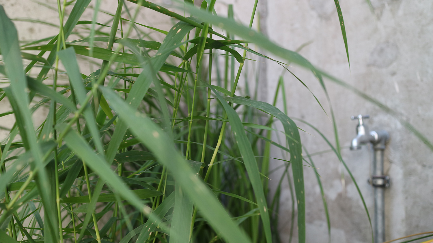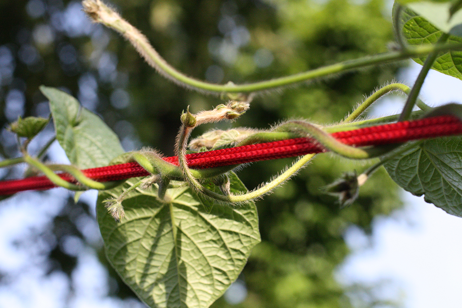 Während Kabarett und Musik über die Bühne gehen, soll sich auch der Außenbereich entwickeln und verändern. Ausgesäte Kletterpflanzen umwinden die Fäden und verzerren langsam deren Parallelität.