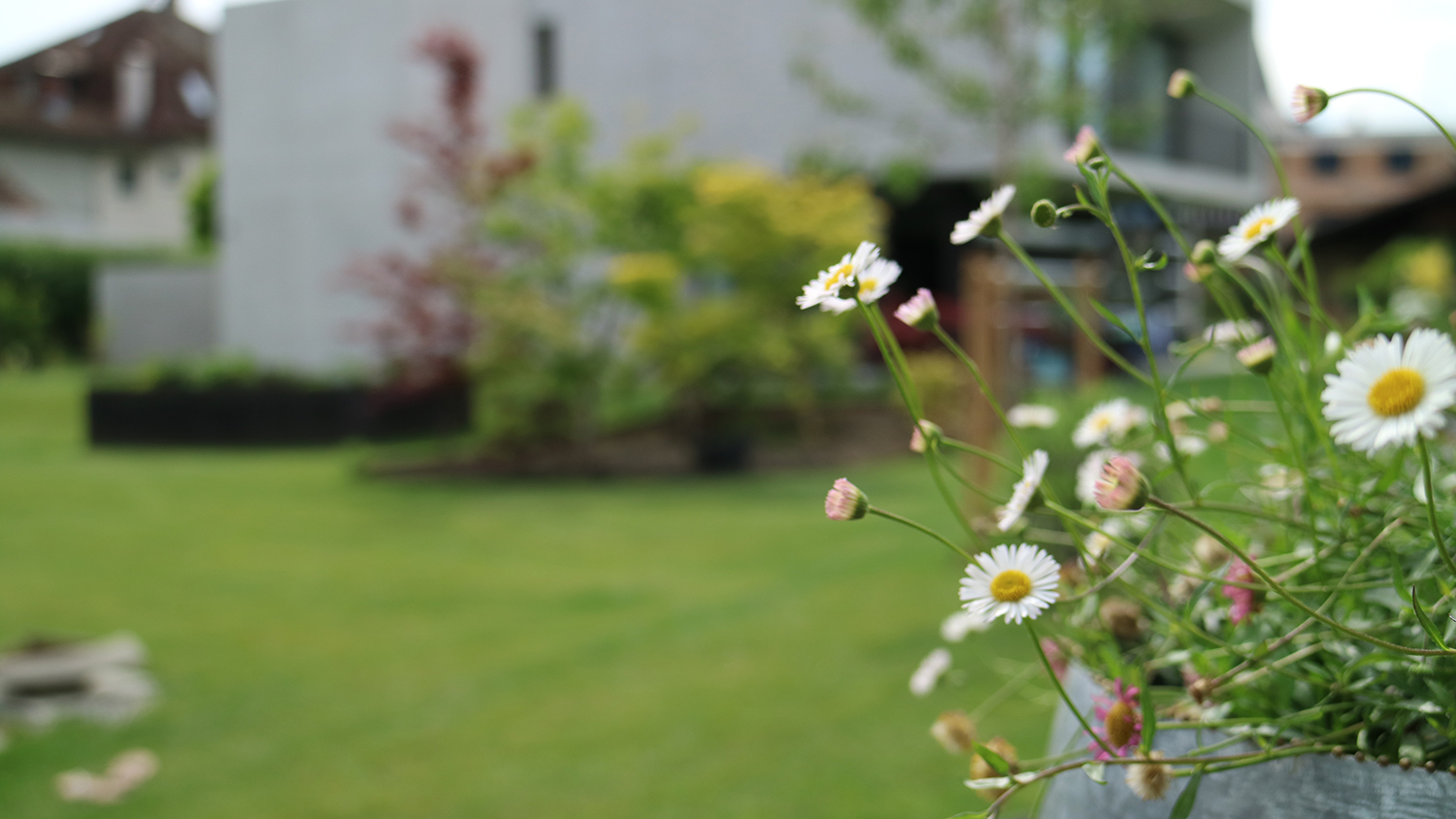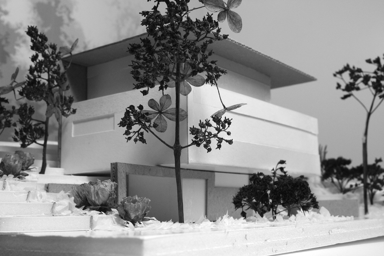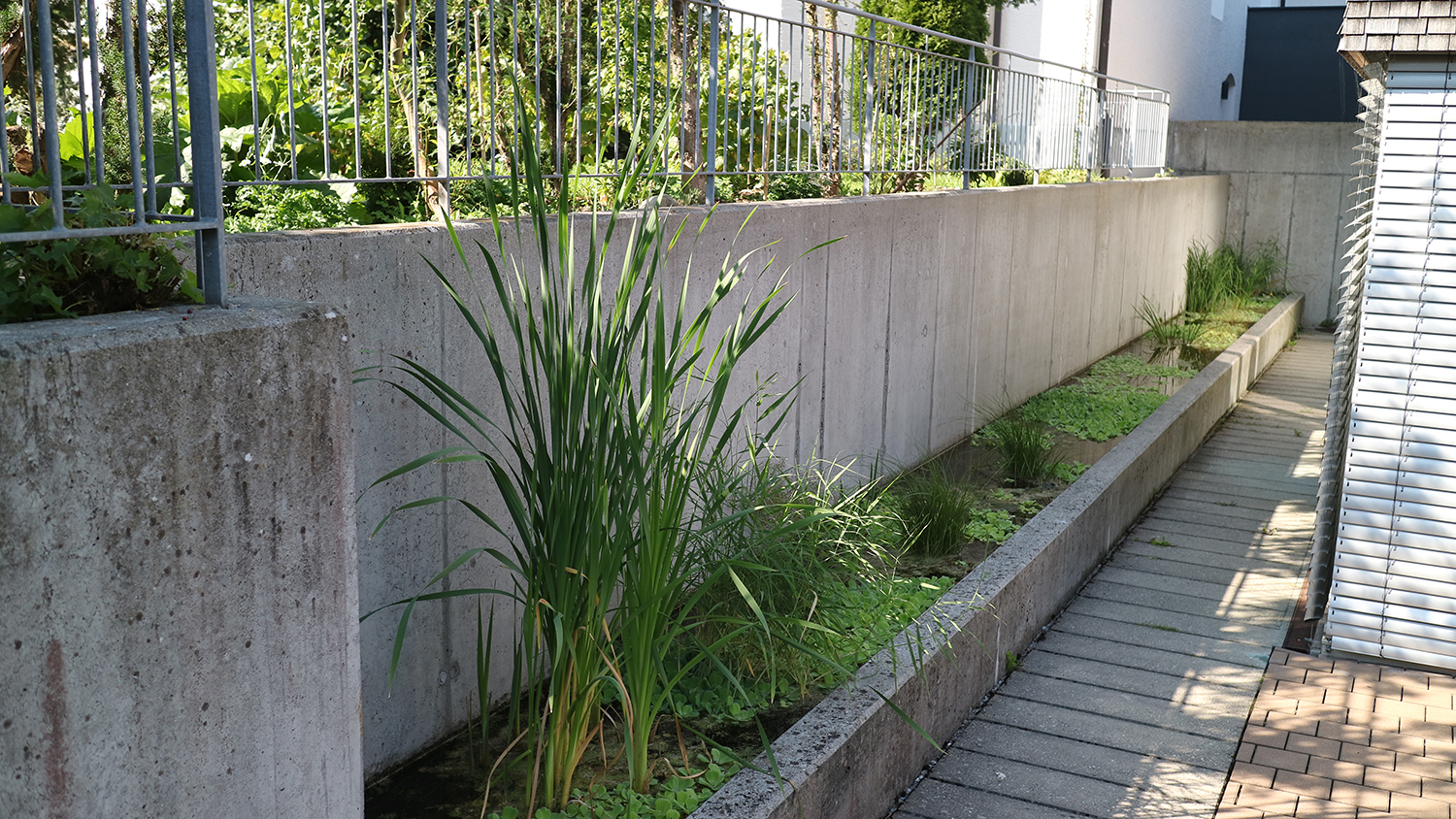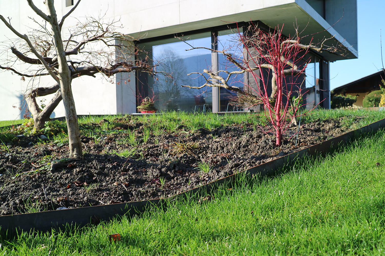 Die Bepflanzung ergänzt und unterstützt zum Einen die Qualitäten der unterschiedlichen Räume und setzt zum Anderen die Beziehung nach außen wieder in den Vordergrund.