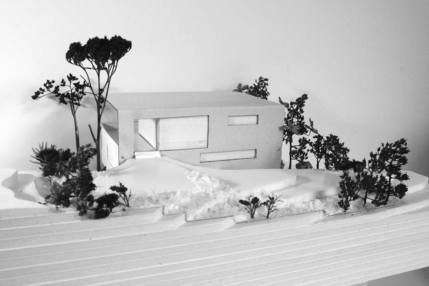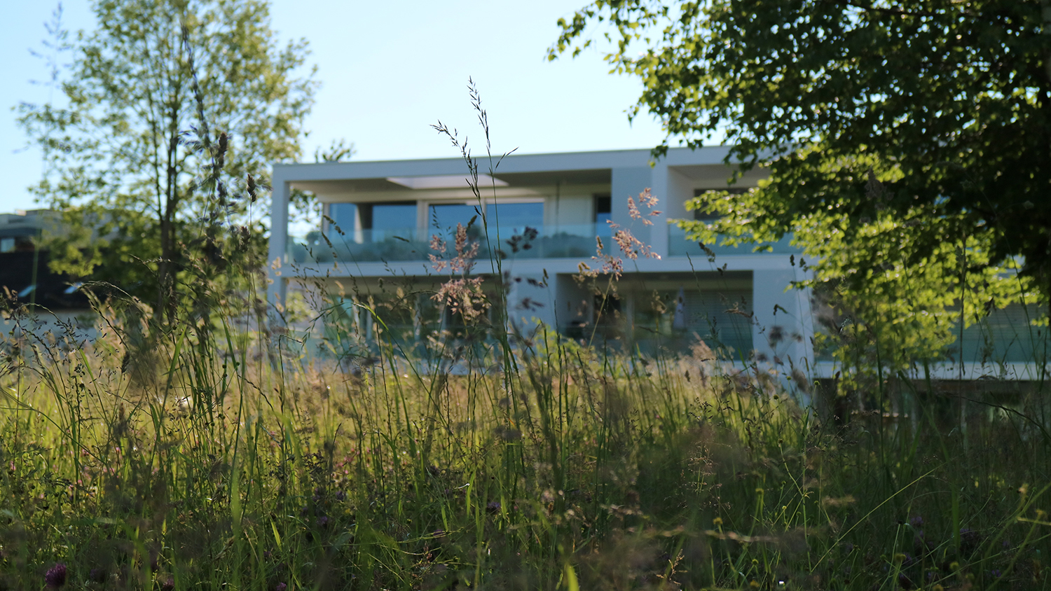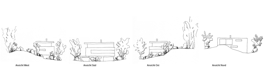 Die dominierende Grenze und Präsenz des bestehenden Waldes fließt in den Garten ein. Bäume, Sträucher und Stauden wachsen zu einem neuen, lichten Waldrand heran. Entlang der Grundstücksgrenze betten sie den Garten ein und erschaffen die Lichtung. Die Wiederholung von Waldpflanzen im Garten lässt den nördlichen Wald nicht mehr als dichte Grenze, sondern als Teil des Gartens erscheinen. Die Pflanzen strukturieren den Garten durch unterschiedliche Größe und Form, erschaffen Räume, rahmen und fokussieren Aus- und Durchblicke. Das Gebäude steht im Süden der Lichtung und bietet - gleich einem Hochstand - den Panoramablick in die Ferne. Auf einer Lichtung entsteht ein vertrautes, geschütztes Reich. Warm, sonnig, geheimnisvoll, versteckt. Sie bietet Ruhe, Erholung, Entspannung und Geborgenheit. Finstersee/Schweiz 2012