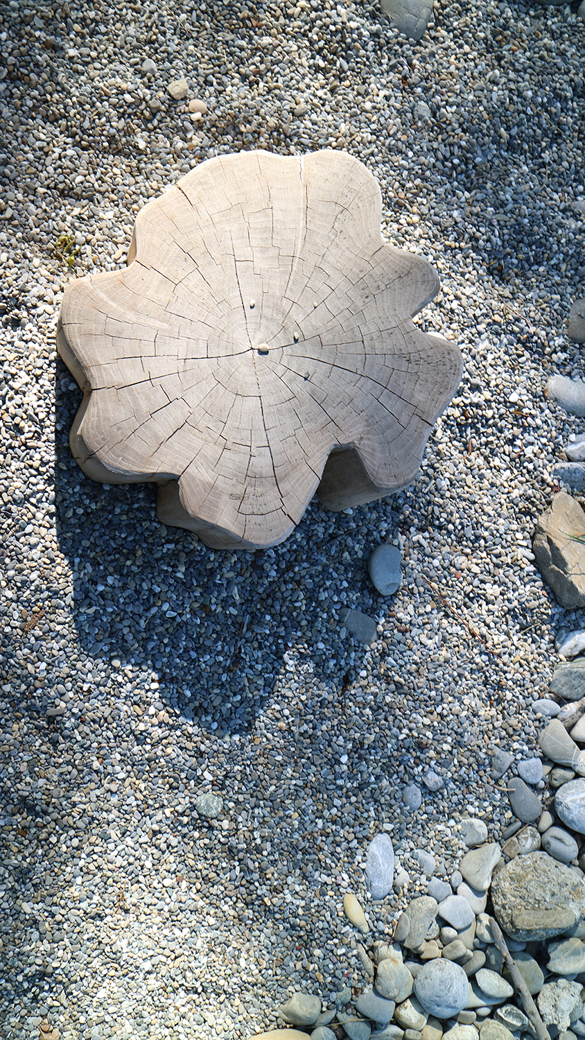 Der Eingriff durch den Menschen in die Natur und die topographische Ausformung der Berge, durch die die Baumstämme unweigerlich den Weg ins Tal finden müssen, machen diese kraftvolle Geste möglich und im Zusammenhang fassbar.