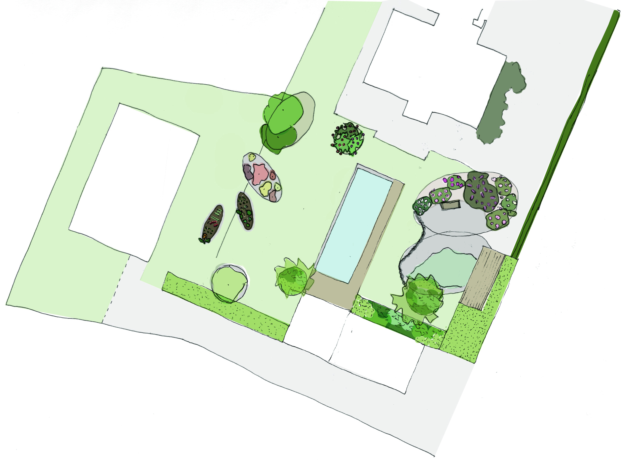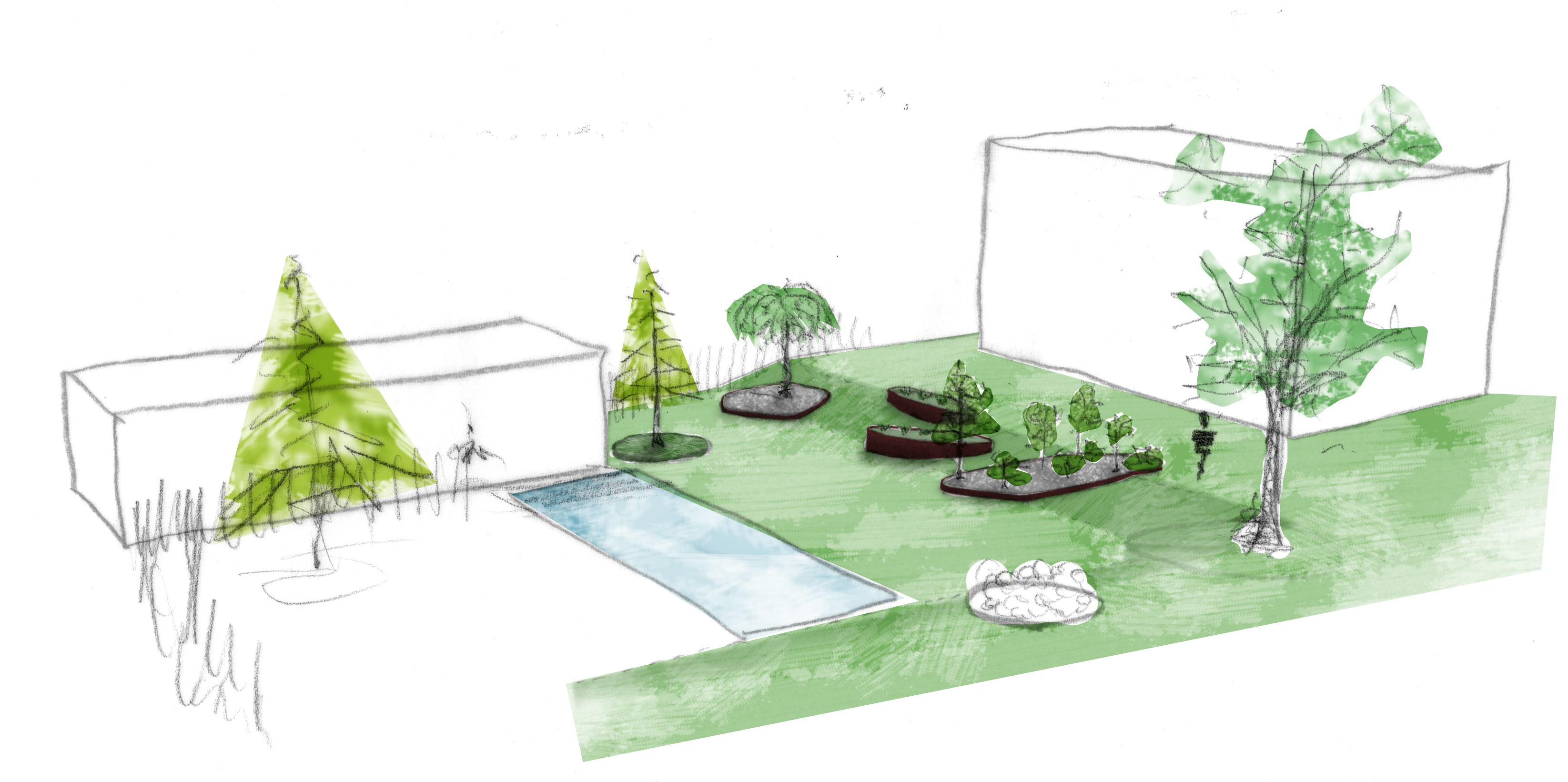 Vertikale Raumstrukturen + See im Garten