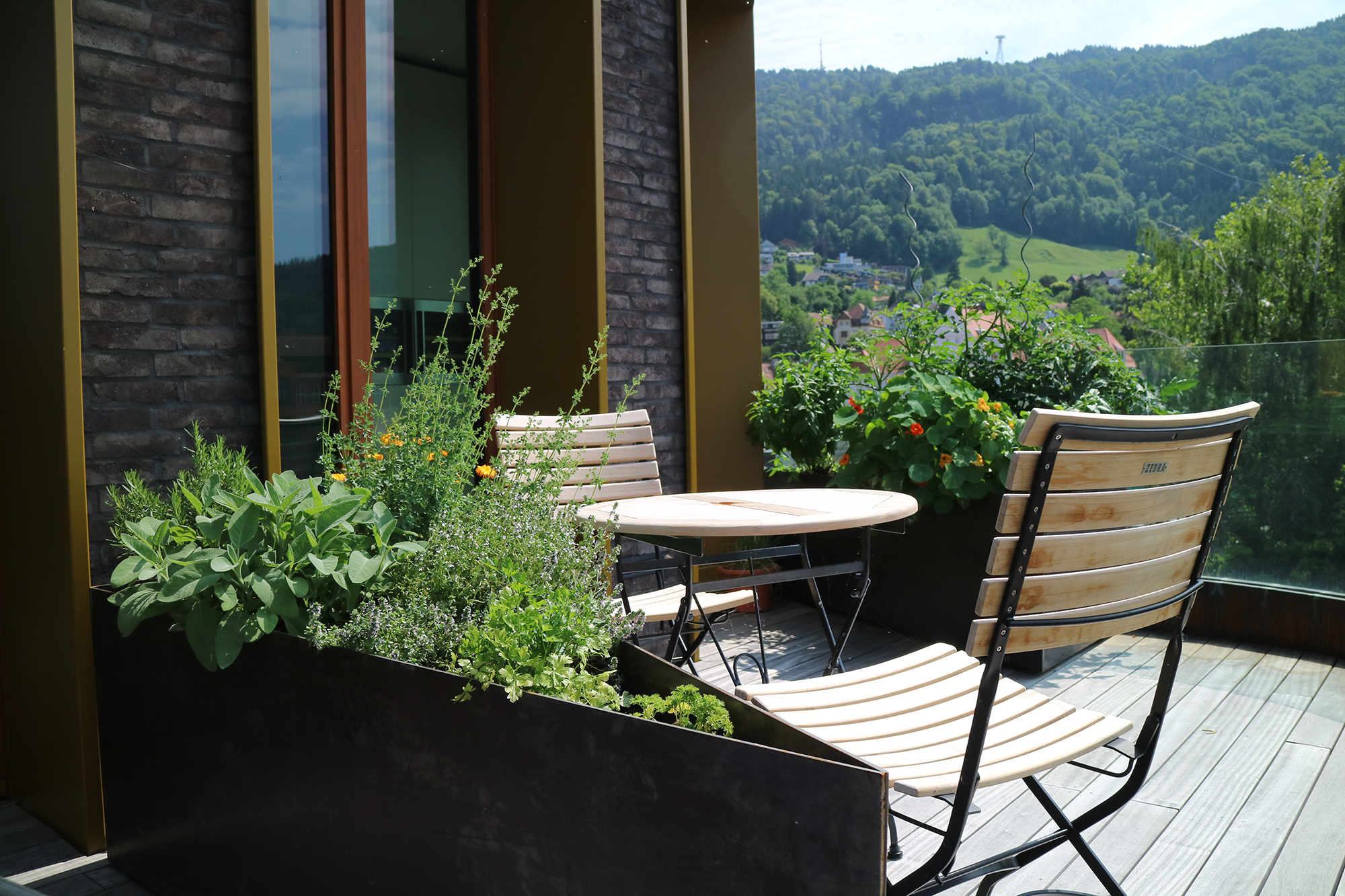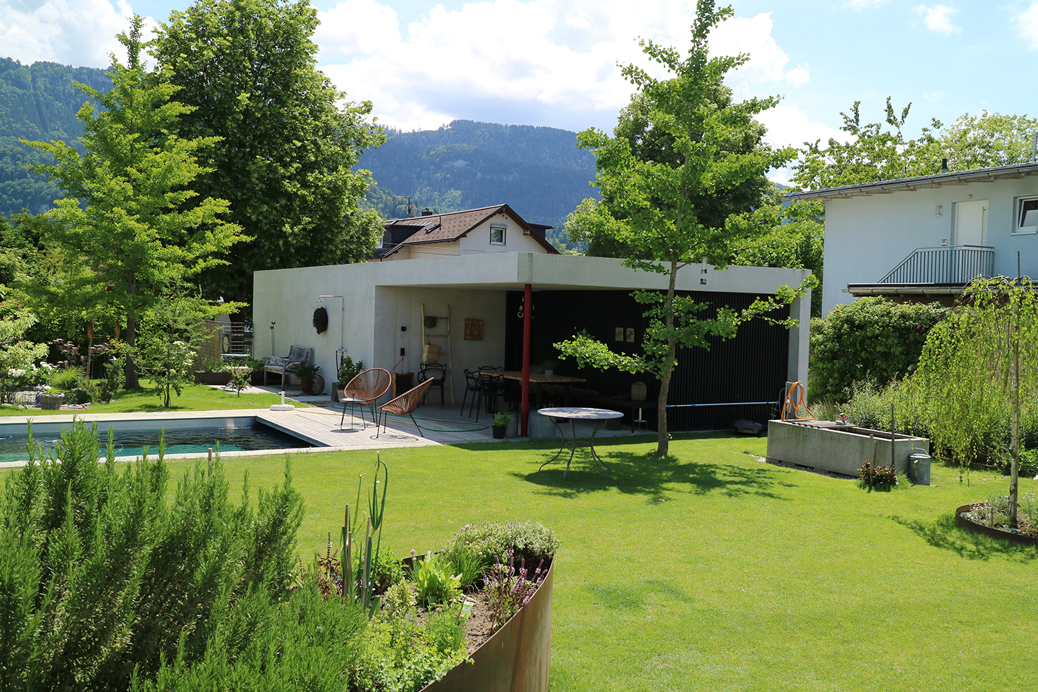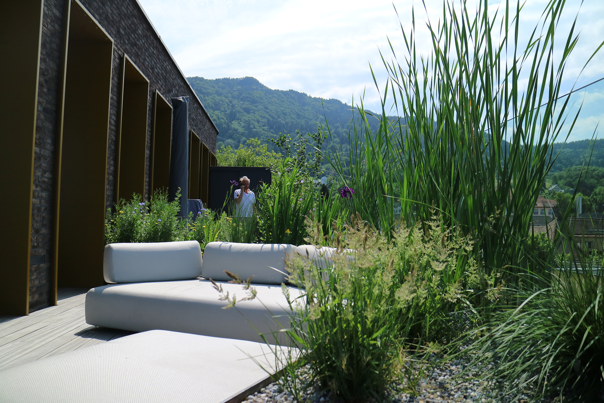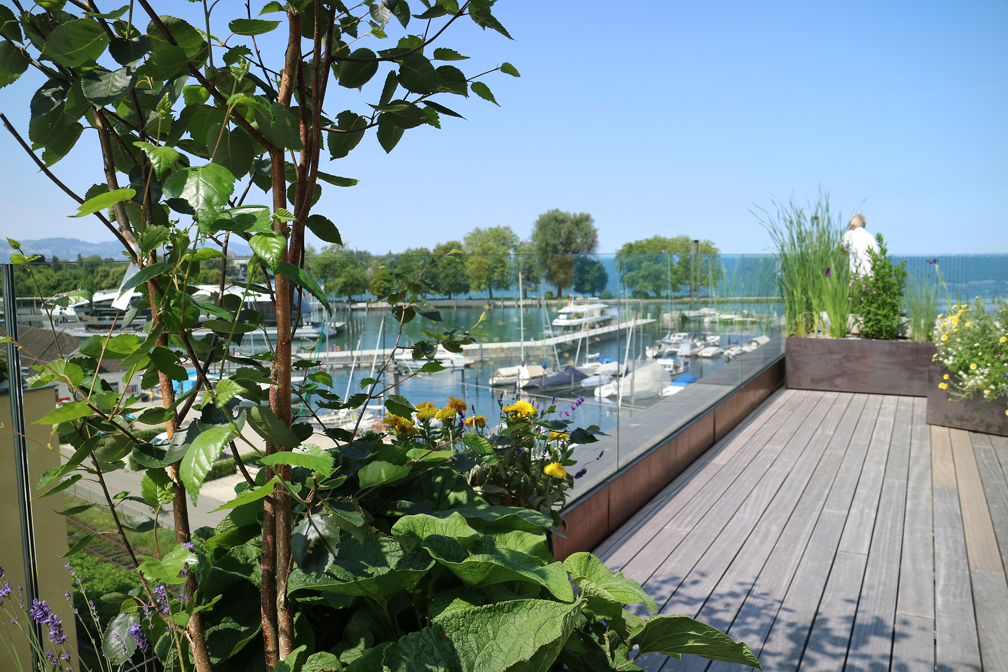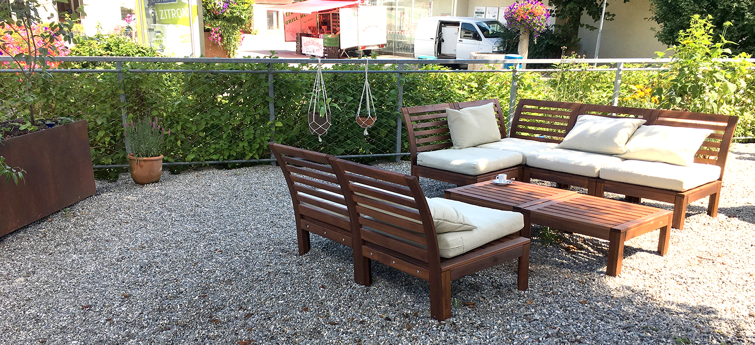 Die Terrasse als Ebene zwischen Berg und See.
