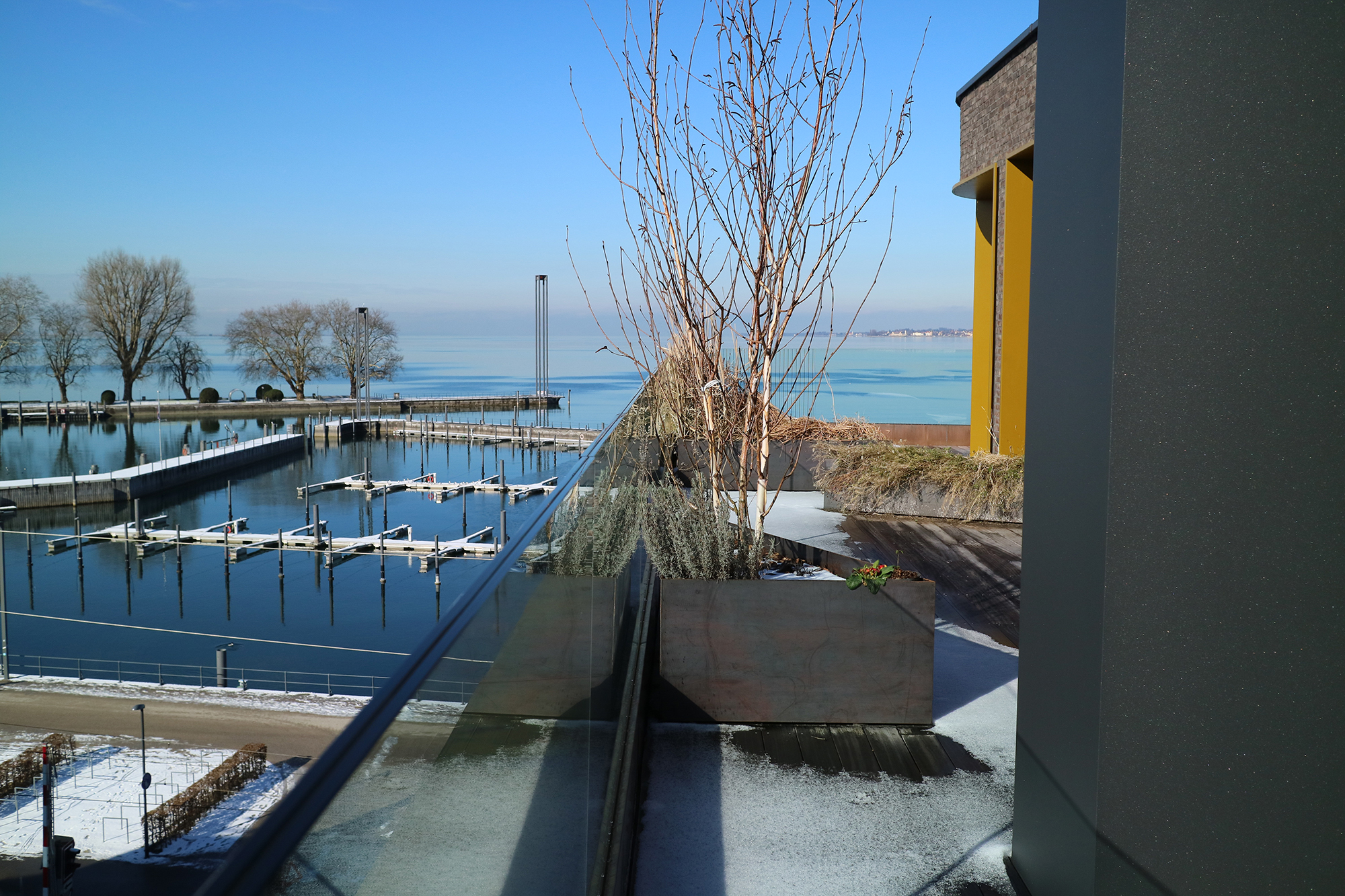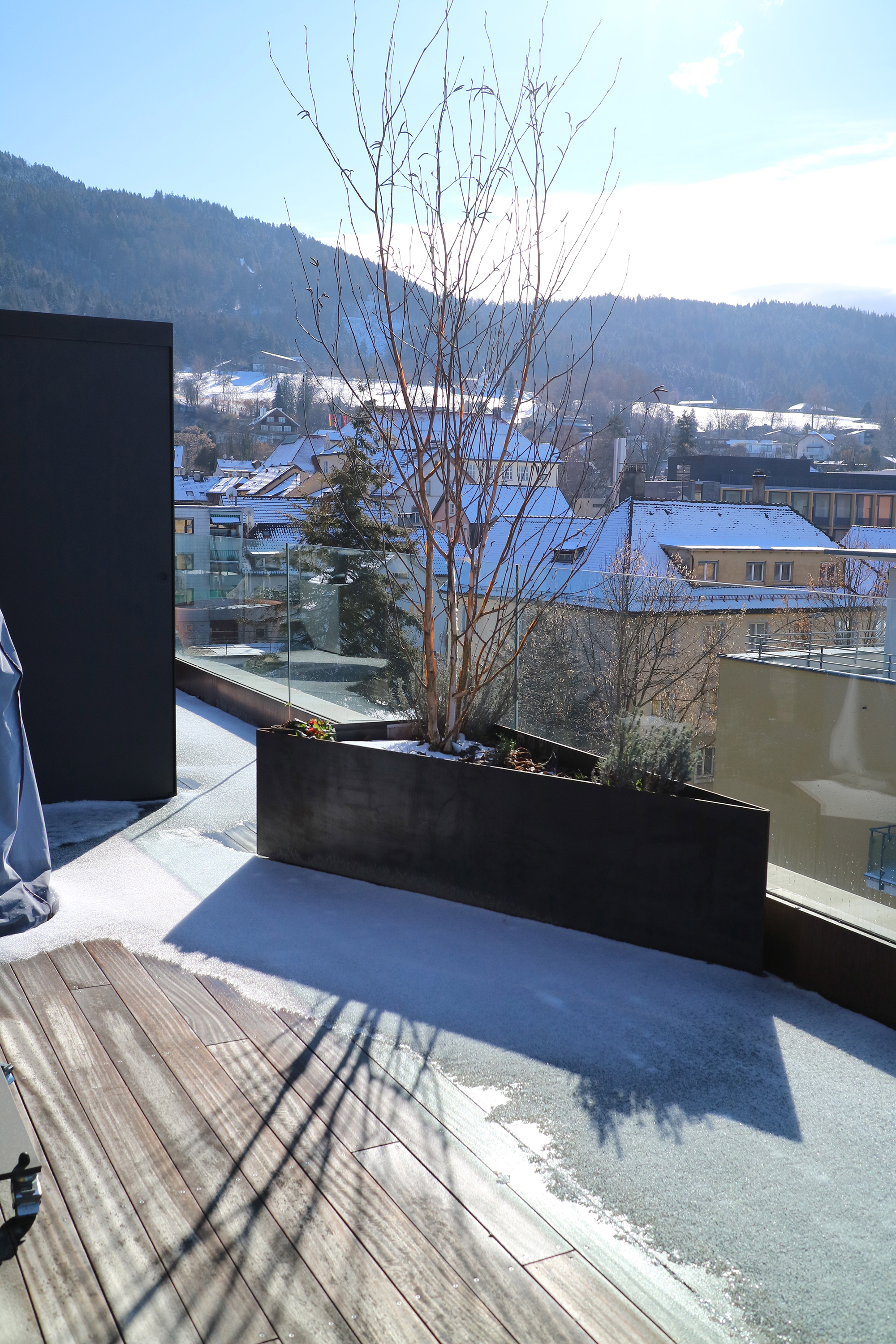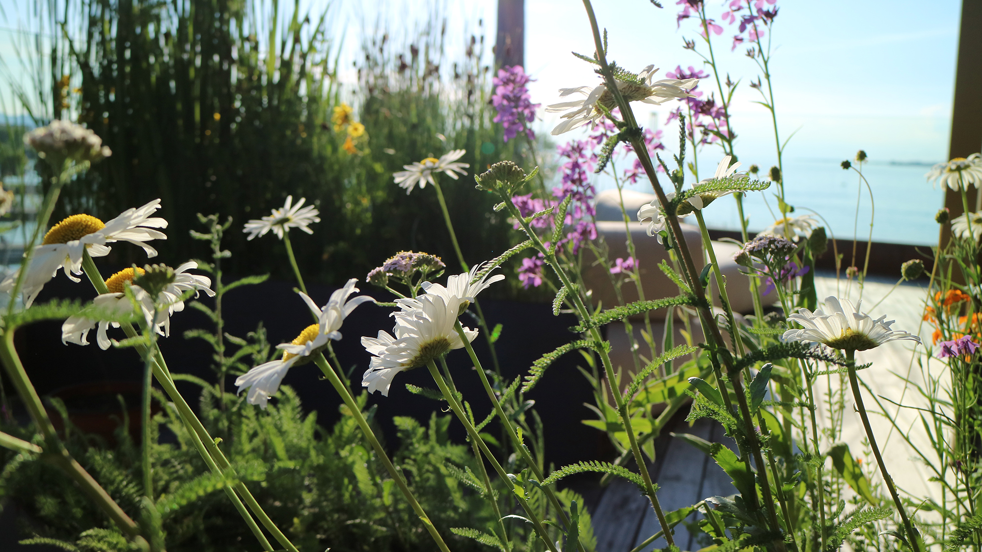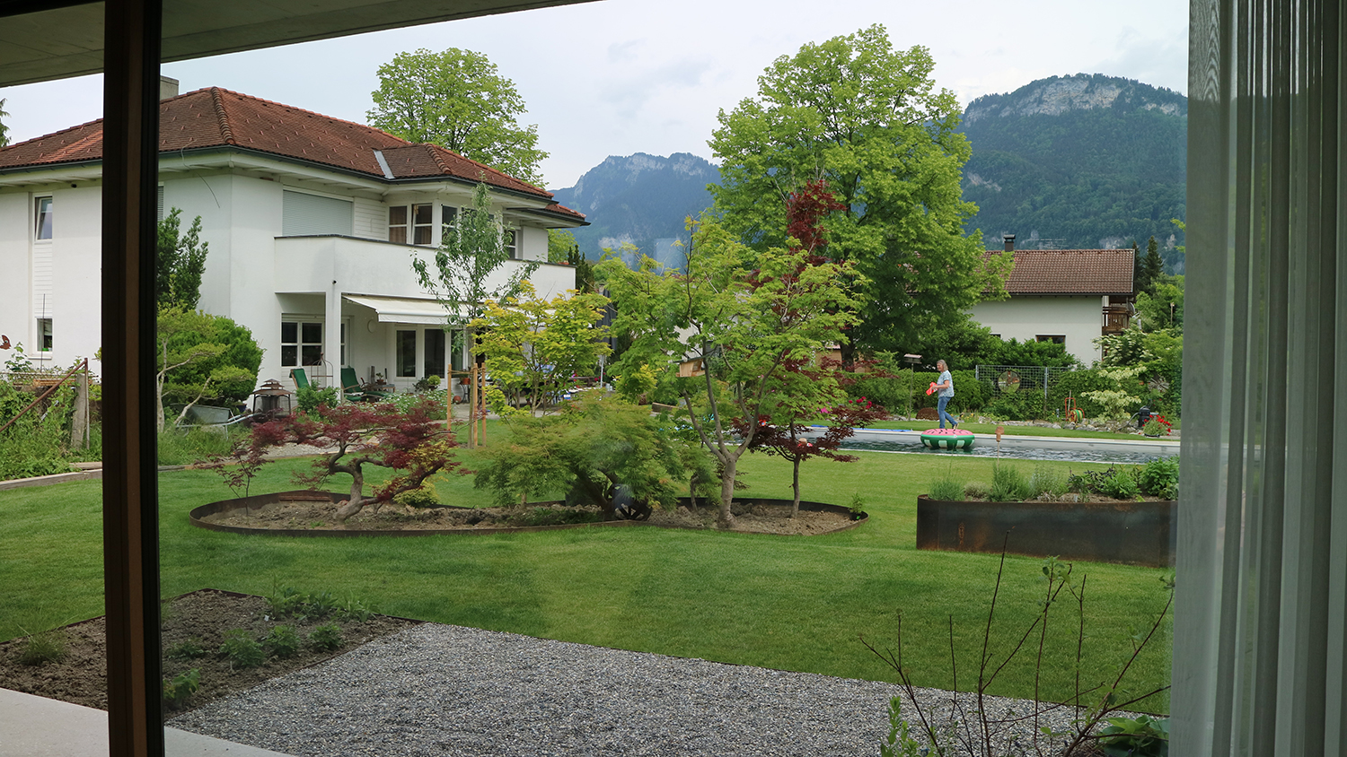 Die Terrasse als Ebene zwischen Berg und See.