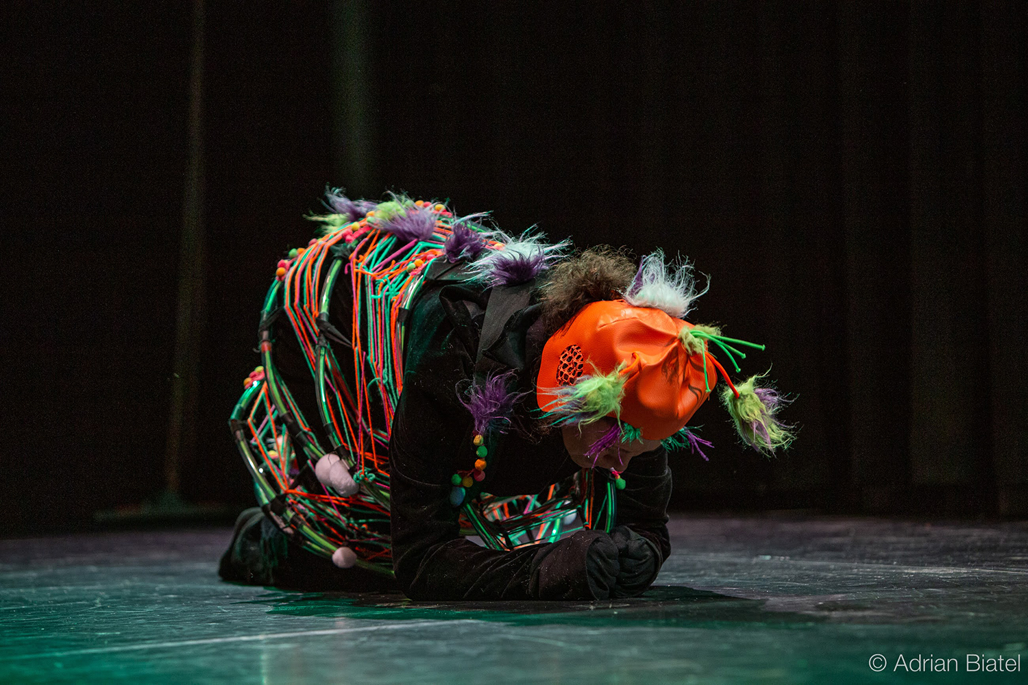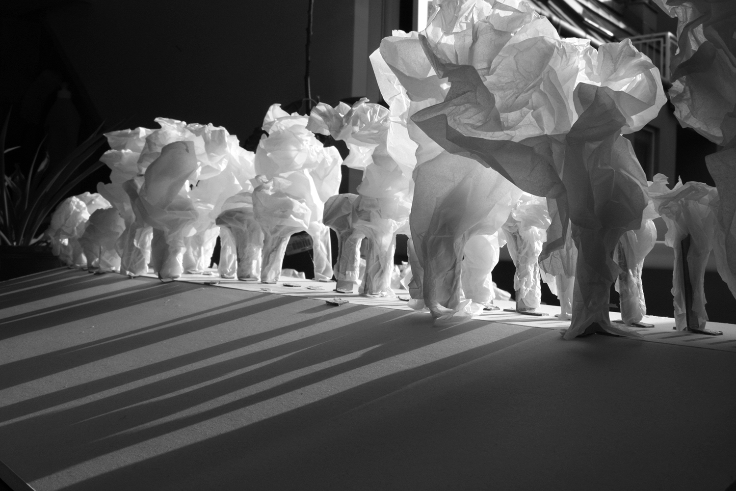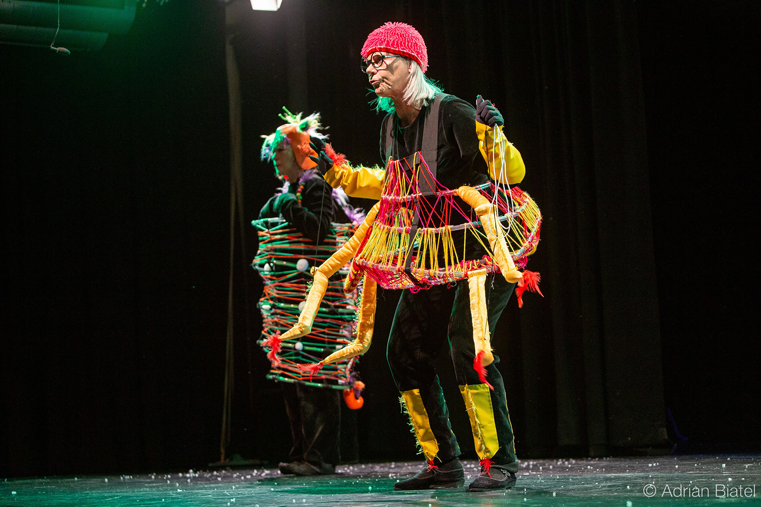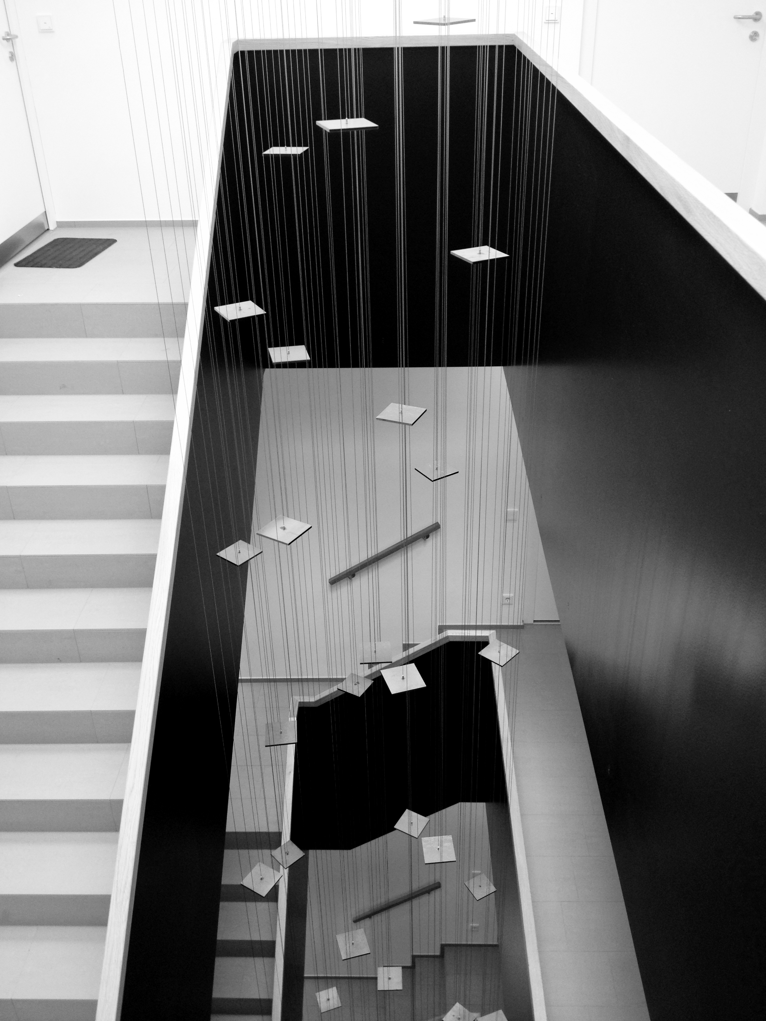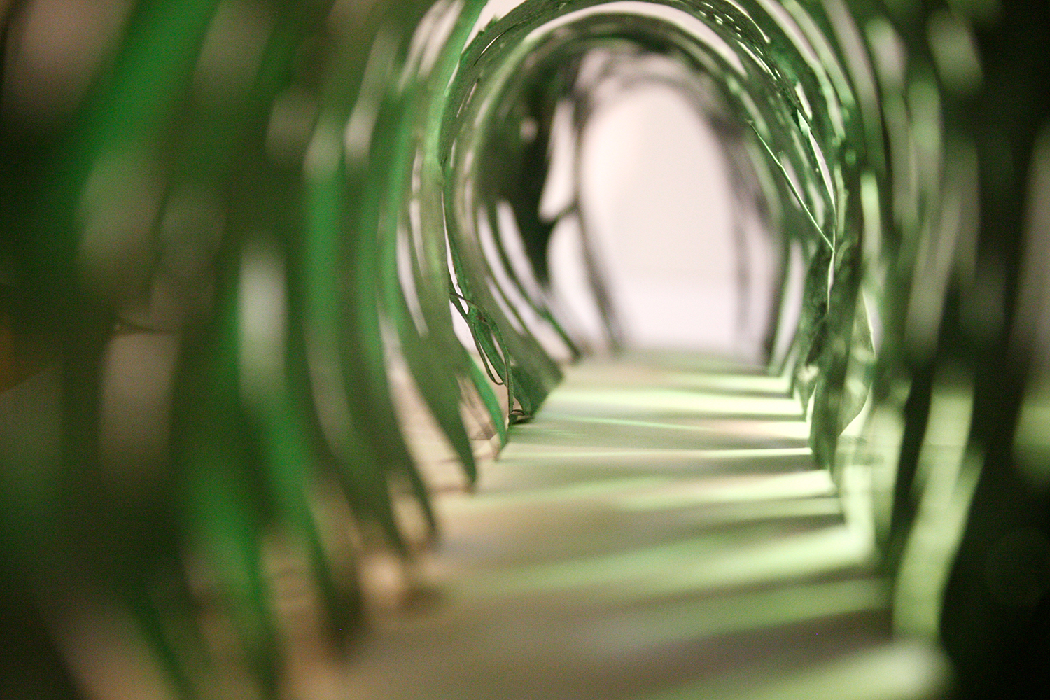 Diese Arbeit verbindet die Geschichte des Ortes mit der gegebenen Raumsituation zu einem eindrücklichen Bild: Vertikal gespannte rote Fäden verleihen dem Gebäude eine zweite Haut, deren Anblick sich für den Betrachter in Bewegung verändert und ihn zum Festival geleitet.