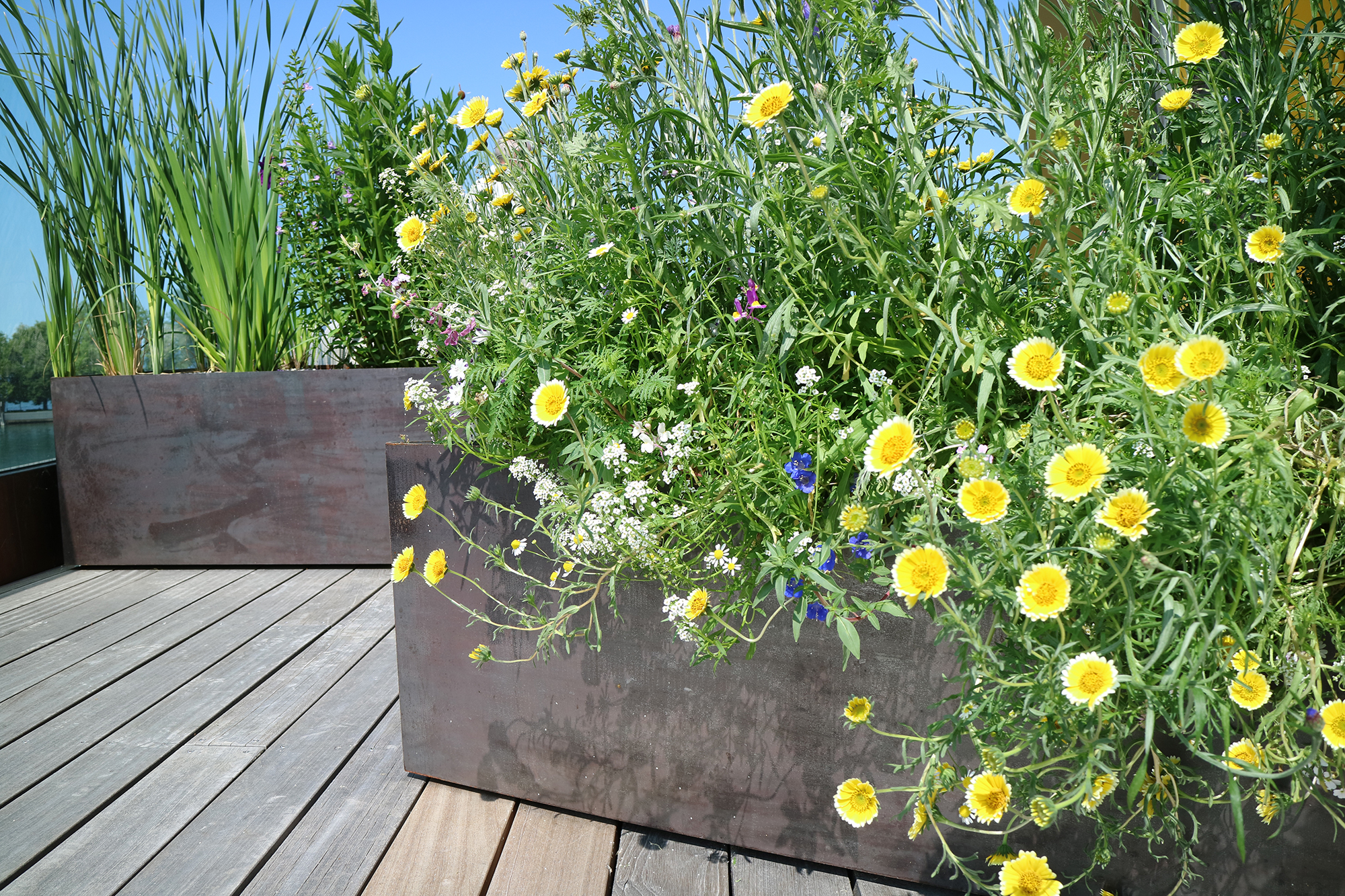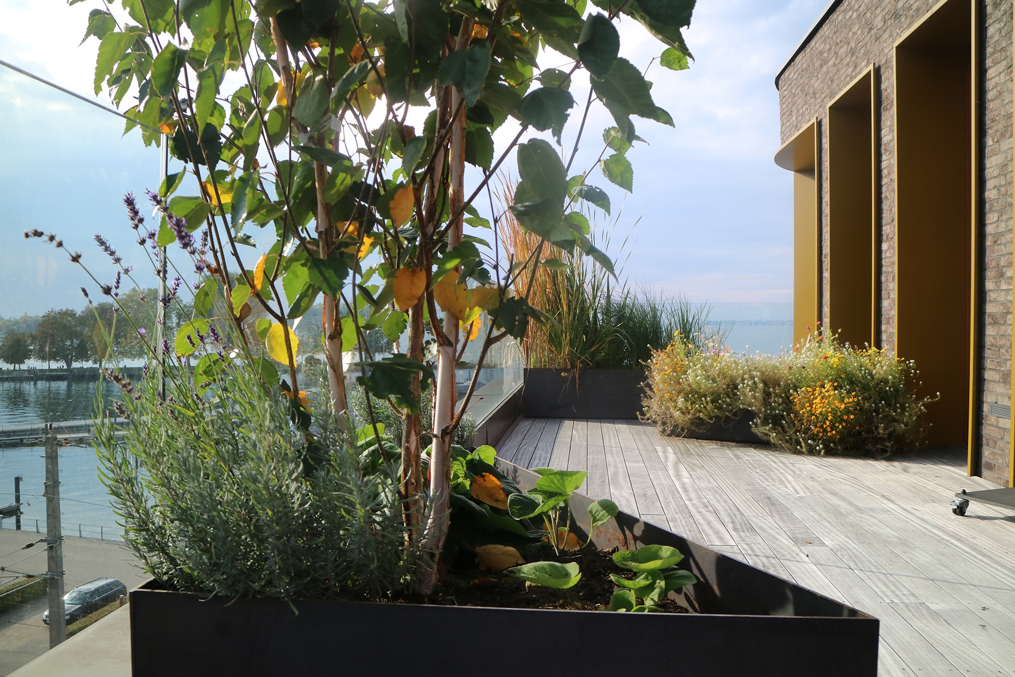 Den wohl wichtigsten Part in diesem Projekt übernehmen aber die Pflanzen, die durch ihre Individualität und ständige Veränderung den Ort erlebbar und erlebenswert machen.