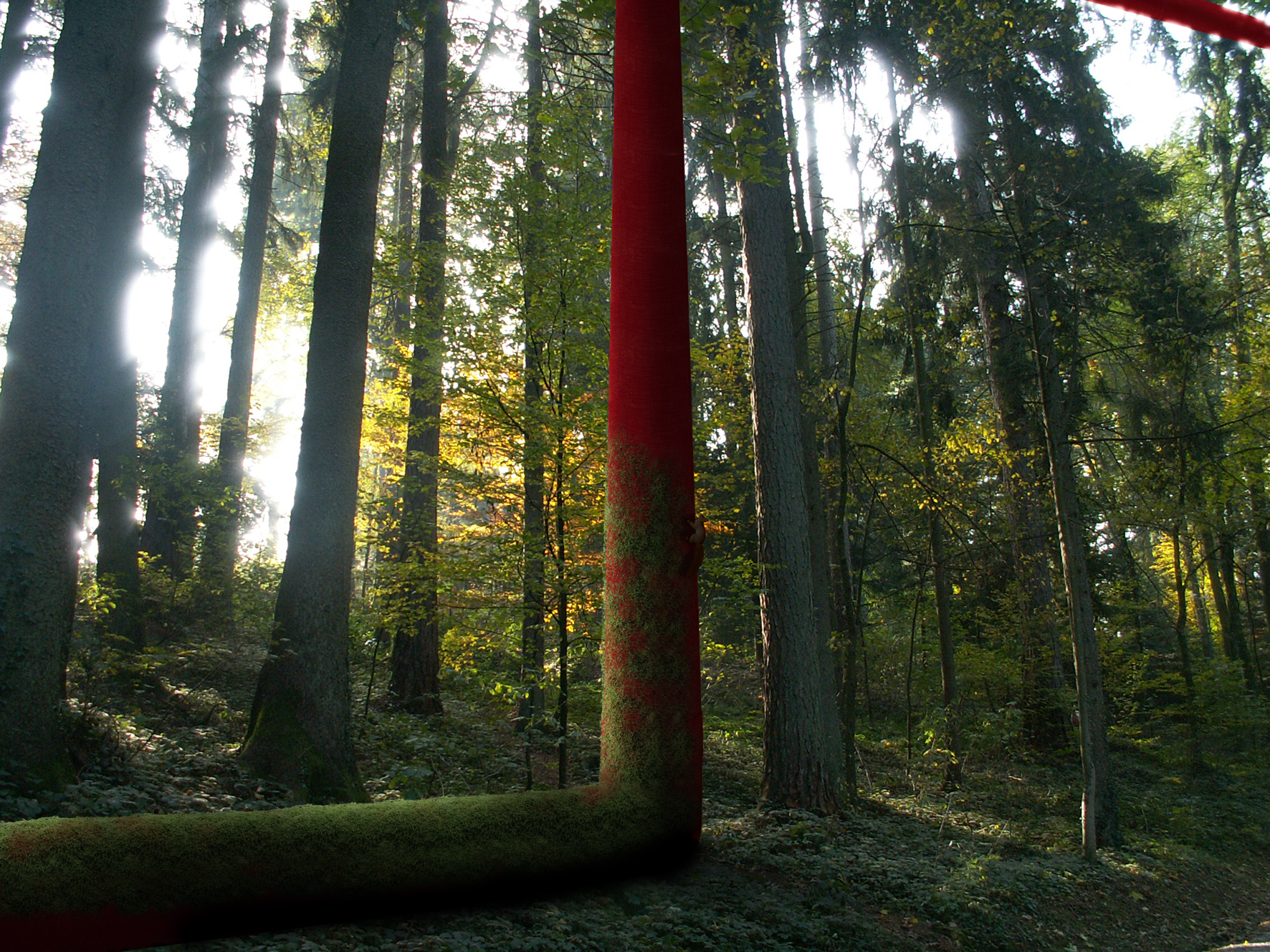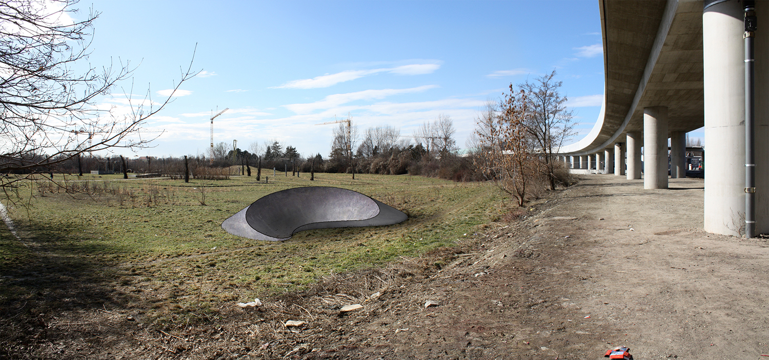 Durch das Installieren einer Skulptur - in Form eines Pipelinerohrs - in die Landschaft und deren Nutzung soll ein neues produktives Spannungsverhältnis geschaffen werden. Die Skulptur in der Landschaft wird im Prozess der Zeit und durch Benutzung zur erweiterten Landschaft - zur Landschaftsskulptur.