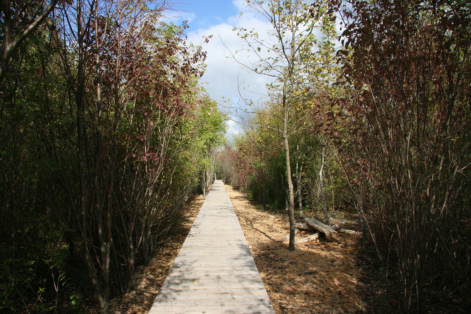 Sie teilt die Landschaft in 4 Räume: den kleinen Seeteil, den großen Seeteil, unter der Brücke und auf der Brücke.
