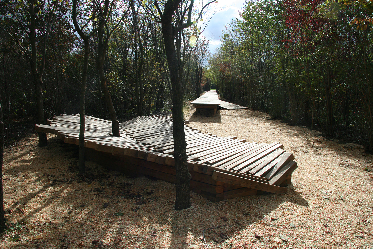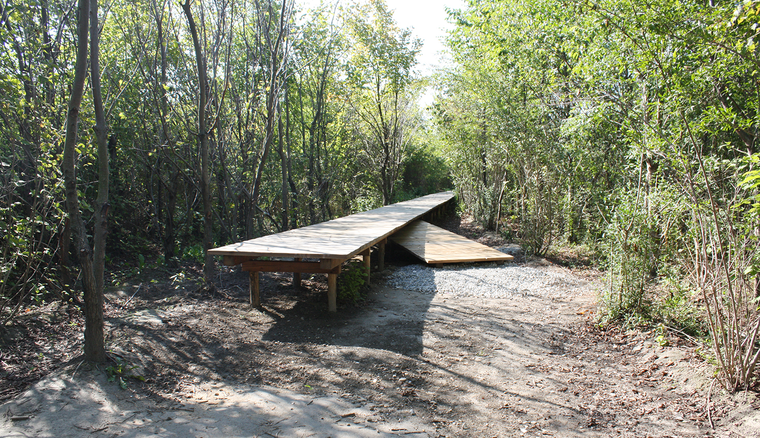 Auf dem ein Kilometer langen geradlinigen Teil der Strecke liegen 1001 nummerierte Betonelemente im Größenverhältnis einer Bahnschwelle (260x30cm). Sie sollen die Nutzer zu unterschiedlichsten Tätigkeiten inspirieren und den persönlichen Bezug zum Ort intensivieren.
