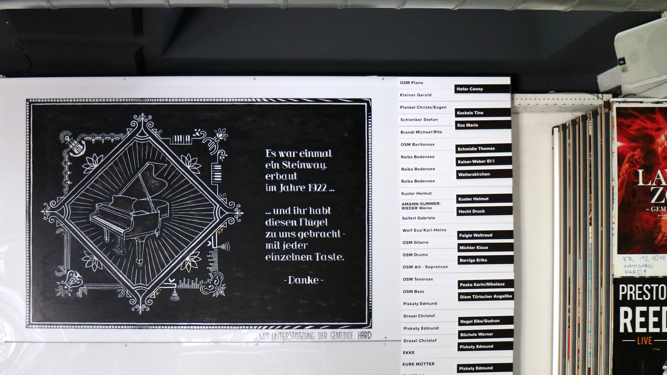 Hard/Österreich 2018Über eine spontane und erfolgreiche Tasten-Patenschafts-Aktion konnte sich die Kulturwerkstatt Kammgarn in Hard unverhofft einen echten Steinway-Flügel aus Hamburg (Baujahr 1922) leisten.